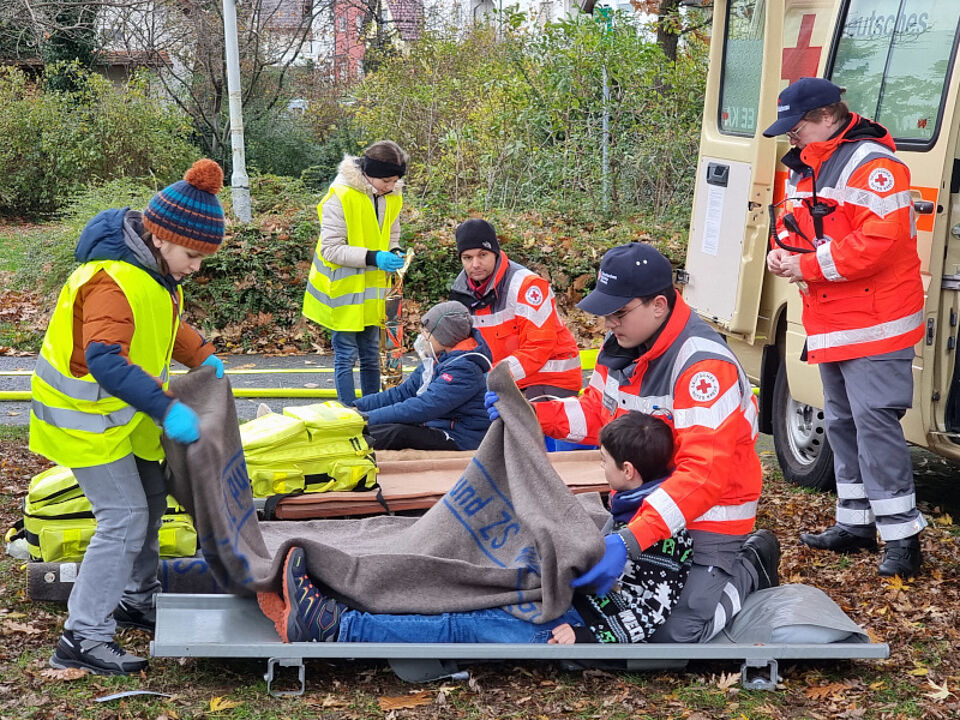 Am Sonntag den 26.11. fand die große Jugendübung der Freiwilligen Feuerwehr an der Grundschule Büchenau statt. Das JRK war mit 2 Kindern und 3 Betreuern ebenfalls vor Ort. Lea und Lukas hatten mit ihren Betreuern alle Hände voll zu tun die sieben Verletzen zu versorgen, die von der Jugendfeuerwehr zum Verbandsplatz gebracht wurden. Unter der Beobachtung der zahlreichen Zuschauer wurden Diagnosen gestellt, Vitalparameter geprüft, die stabile Seitenlage hergestellt und Verbände angelegt. Zum ersten Mal konnten die Kinder ihre erlernten Fähigkeiten unter realen Einsatzbedingungen unter Beweis stellen, was sie mit Bravour gemeistert haben. Ein herzlicher Dank gilt der Feuerwehr Büchenau für die Möglichkeit zur Teilnahme an der Übung. Wir freuen uns schon heute auf die Übung im nächsten Jahr.